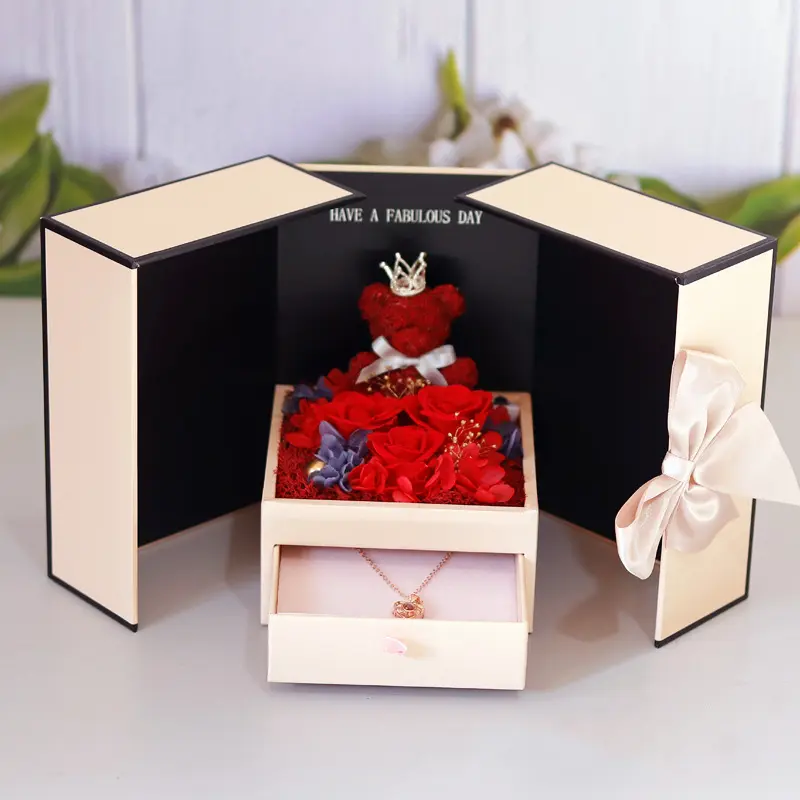 Eternal flower rose moss bear angel double open surprise jewelry box