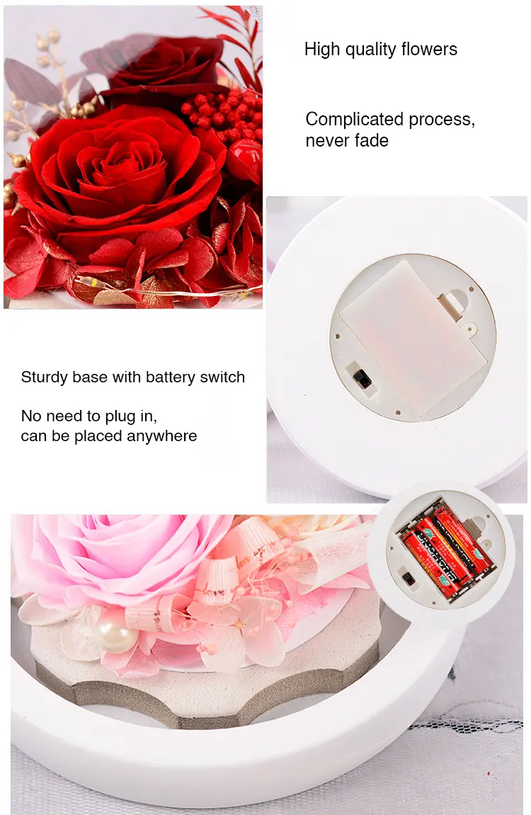 - Selected preserved flowers. Hand-selected fresh rose flowers, can maintain for at least three years.