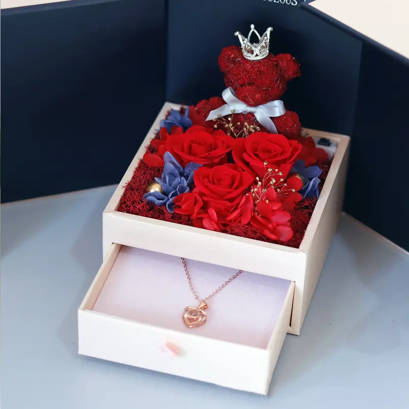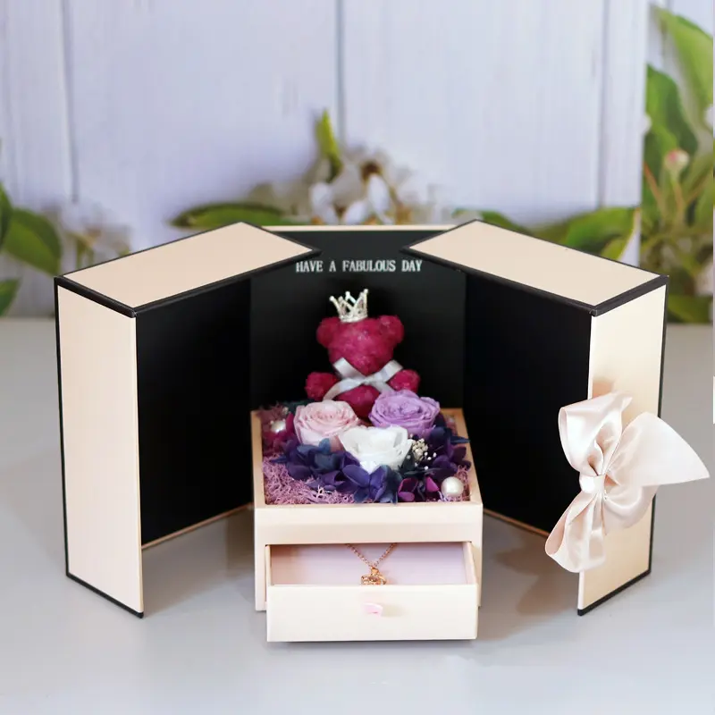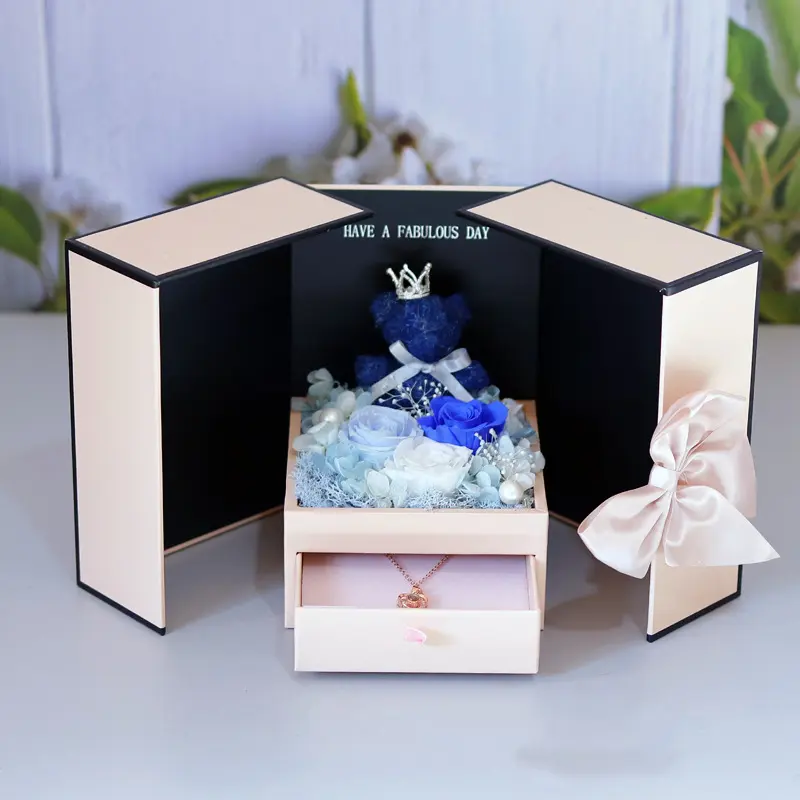 Eternal flower rose moss bear angel double open surprise jewelry box Eternal flower rose moss bear angel double open surprise jewelry box
