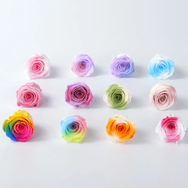 Preserved Flower Grade A Rainbow Color Gradient Rose Head 4-5cm 8 pcs