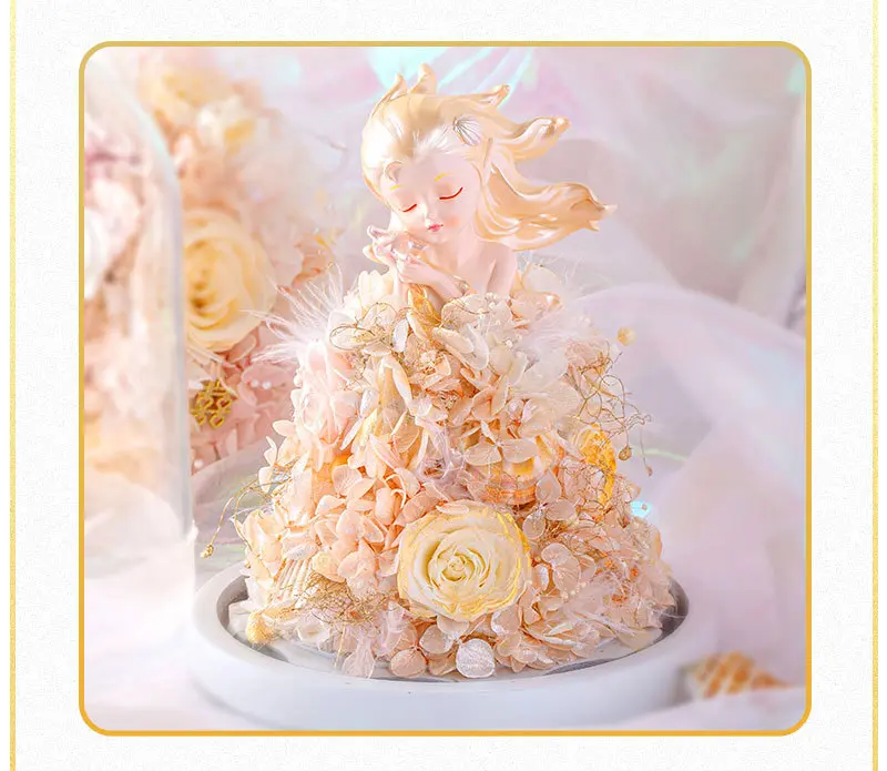 Eternal flower rose moss bear angel double open surprise jewelry box
